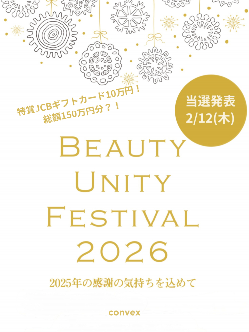 いつもご来店ありがとうございます!ただいまconvexでは、全国のサロンで同時開催されている抽選キャンペーンに参加しています!【当選内容/総額】・特賞100,000円分 JCB...